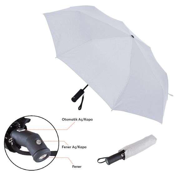 AK-5100 Beyaz 8 Telli Işıklı Şemsiye