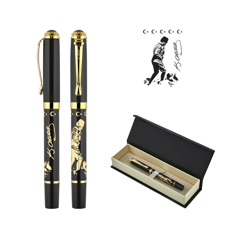 AK-685-KR Ata Kabartma Figürlü Metal Roller Kalem Seti için Renk ve Stokları
